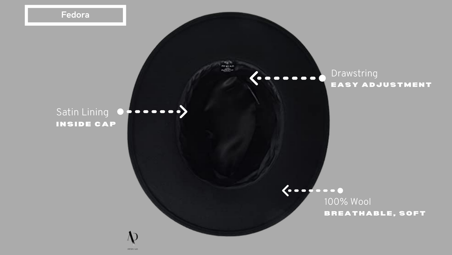 The adjustable “satin lined” fedora can be adjusted to find that perfect fit. The fedora is made with 100% wool with a satin lined that provides a double layer of protection to help retain moisture, reduce breakage, decreases frizzing, promotes hair growth, and maintains protective styles. Our fedoras are designed for individuals of all hair types and styles.